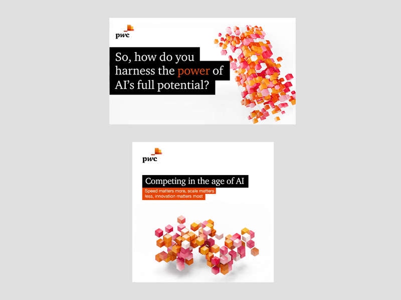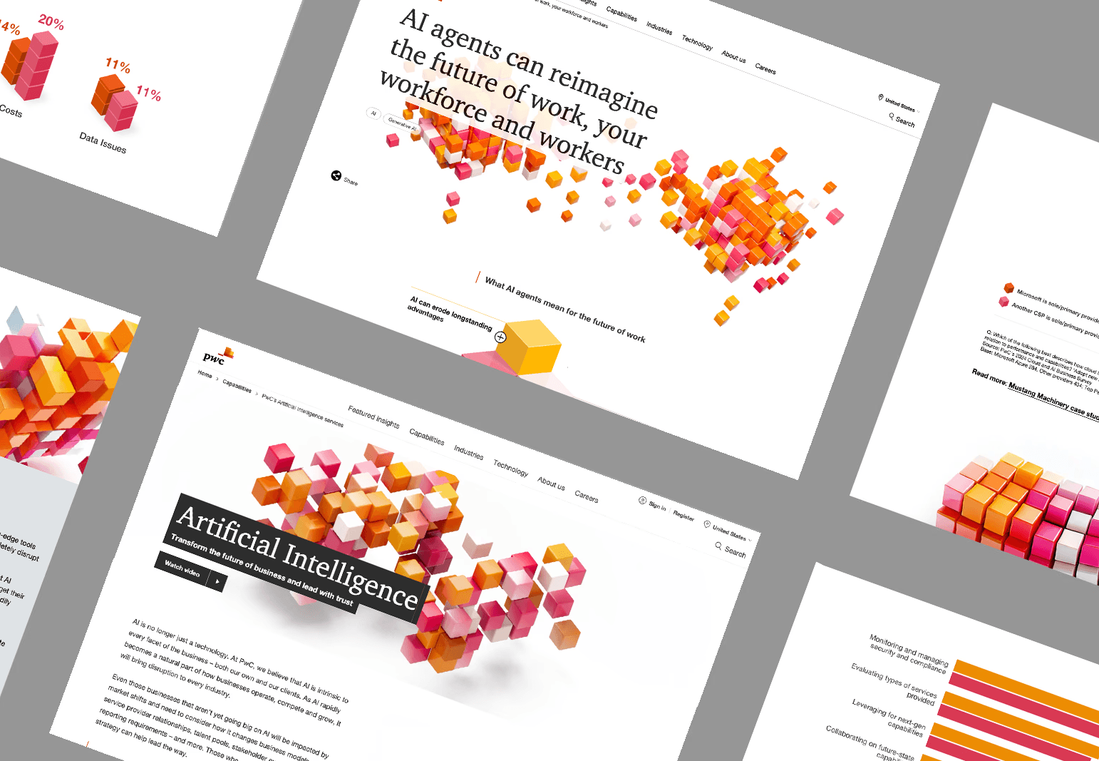 Collaborating closely with a 3D animator, I art directed a series of animated cube sequences that brought the data-driven concept to life across PwC’s digital experiences.