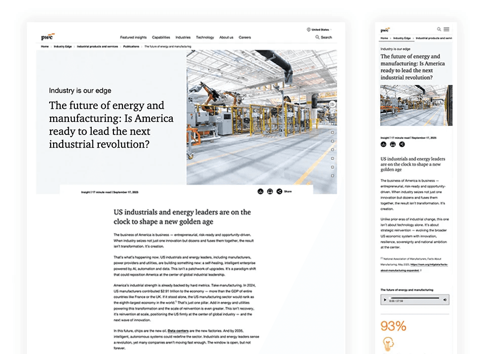 Through close collaboration with content strategists and developers, I delivered a polished and immersive user experience that strengthened PwC’s position as a thought leader in the future of energy and manufacturing.