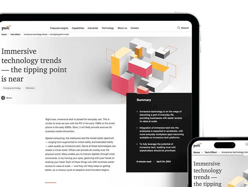 An award winning B2B services website that extended into a global, multi-channel campaign, spanning web and social platforms, and was adopted across international markets as a cornerstone of PwC’s digital transformation and metaverse strategy.
