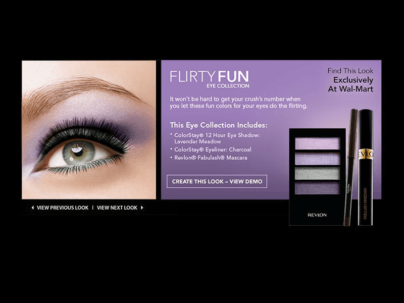 As Lead Designer, I designed and led the creative execution for an interactive microsite launching a new Revlon makeup line, sold exclusively at Walmart.